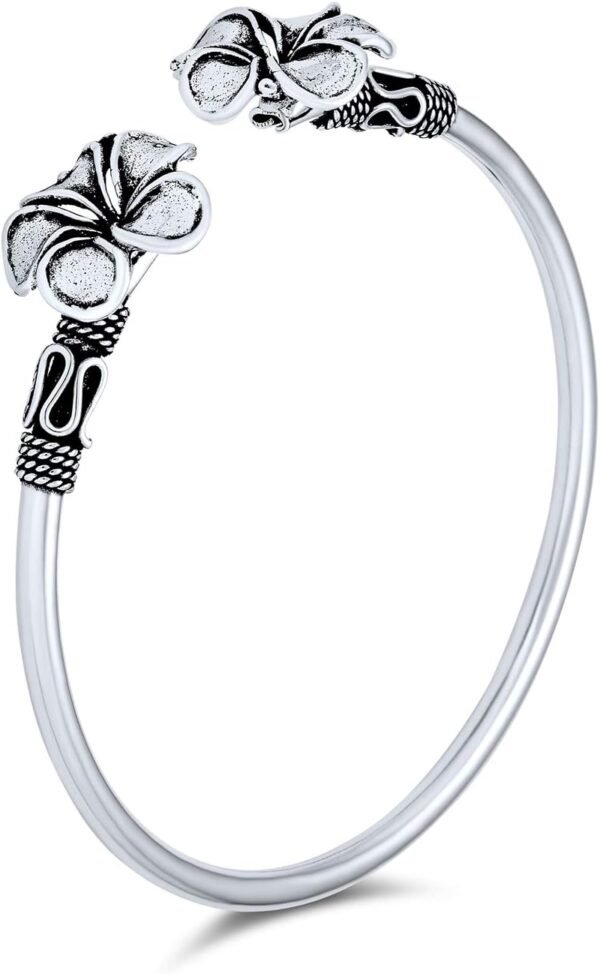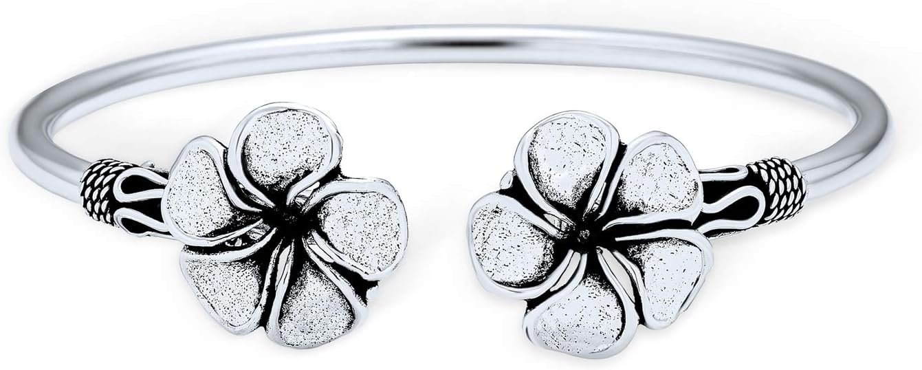 • For a feminine touch with an exotic, Bali style feel you will love this enchanting, . sterling silver cuff bracelet. Featuring a beautifully crafted , Plumeria flower motif for tropical appeal with a Bali rope design and oxidized silver accents.