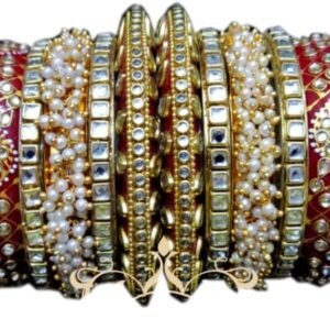 Hand Painted Red & White Bridal Pakistani Pearls Bunches Bangles Set Punjabi Wedding