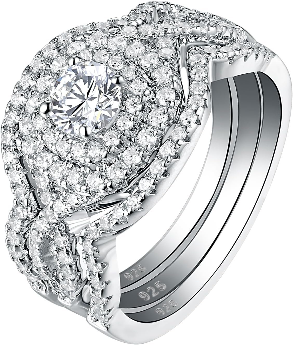 - ♥Good for Daily Wear♥ Jewellery high quality AAAAA cubic zirconia sterling silver engagement ring set for women. Shine like a natural diamond wedding rings for women. Perfect to match with womens wedding bands.