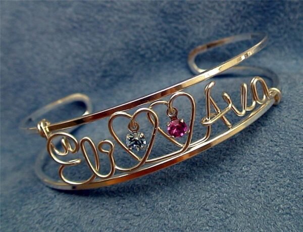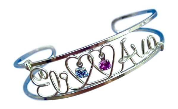 Personalized Mother’s Bracelet~Gold, Silver or Rose Gold Wire Cuff, Bangle~Hearts~ Birthstones~1, 2, 3, 4 Children’s Names~Mommy Jewelry~Gift for Twin Mom, New Mom