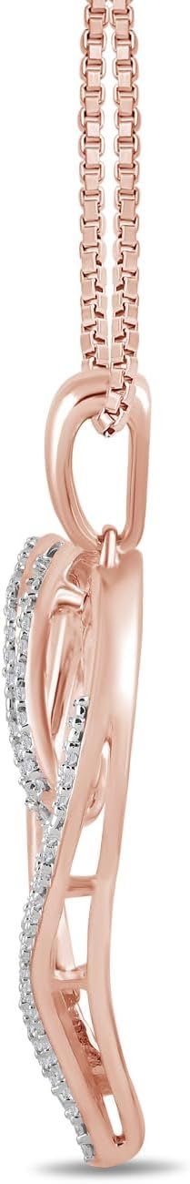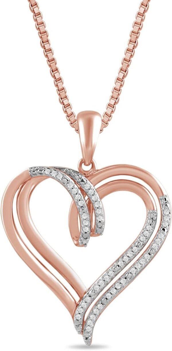 • STYLE: This timeless 1/10 cttw 14k rose gold over sterling silver necklace features an open heart 22.03mm in width with inset diamonds in a curvy silhouette