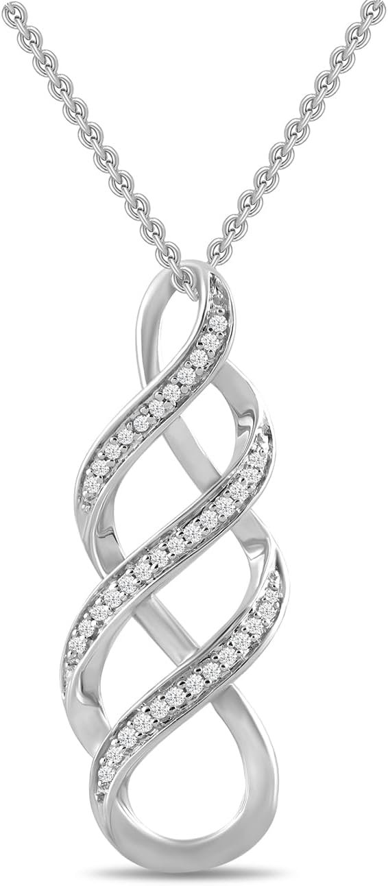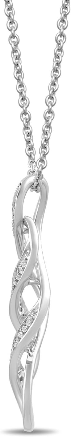 - STYLE: This elegant 1/10 cttw necklace features a sterling silver double pendant 11.46 mm in width embellished with prong-set round diamonds on an 18″ rolo chain